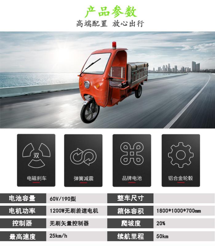產(chǎn)品簡(jiǎn)介:型號(hào):華保白系-1 QYB-1; 1、續(xù)航里程:70km;轉(zhuǎn)彎半徑:3m;爬坡度:25度;最高時(shí)速:25km/h;2、電池:60V/190AH;電機(jī):1200W;箱體:1800*1000*700mm;額定裝載質(zhì)量:500KG