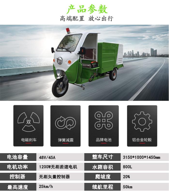 產(chǎn)品簡介:型號:清系800-2 QX800-2;1、續(xù)航里程:60km;最高時(shí)速:30km/h2、設(shè)備尺寸:3150*1000*1450;卷管器:15米自動卷管器;壓力:260公斤;水箱容量:630L;3、電池:48V/45AH;電機(jī):1200W