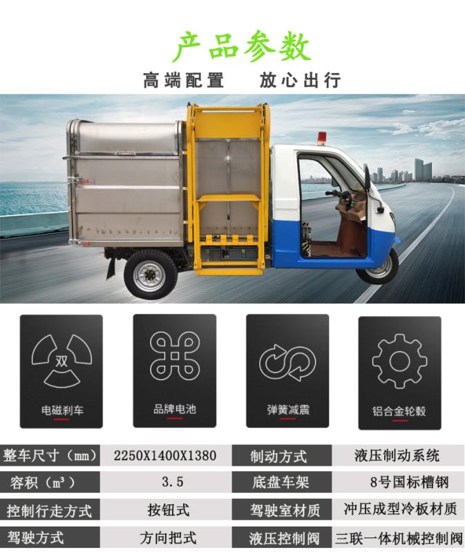 產品簡介:型號:JA3000DZH;品牌:金昂牌;車廂尺寸:2250X1400X1380;車箱容積:3.5立方